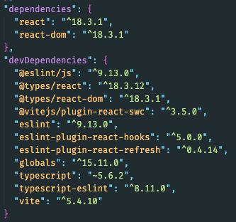 프로젝트에서 사용하고 있는 패키지들은 전부 package.json에 명시되어 있다.