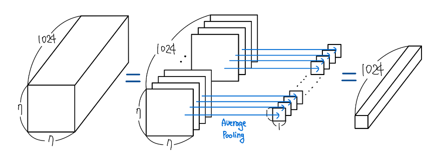 네트워크 마지막 부분에 Fully Connected 연결 대신 Average Pooling을 사용하는 방법이다