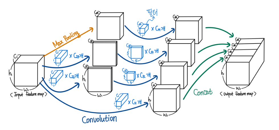 Inception: https://github.com/namduhus/GoogLeNet/blob/main/src/models/module/Inception.py
