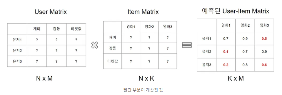 user-item matrix에 대하여 데이터가 없는 부분을 model을 통해 채워 넣는 과정