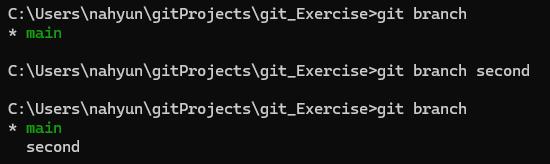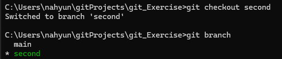 2) 자신이 사용할 branch 추가 (second로 이동)