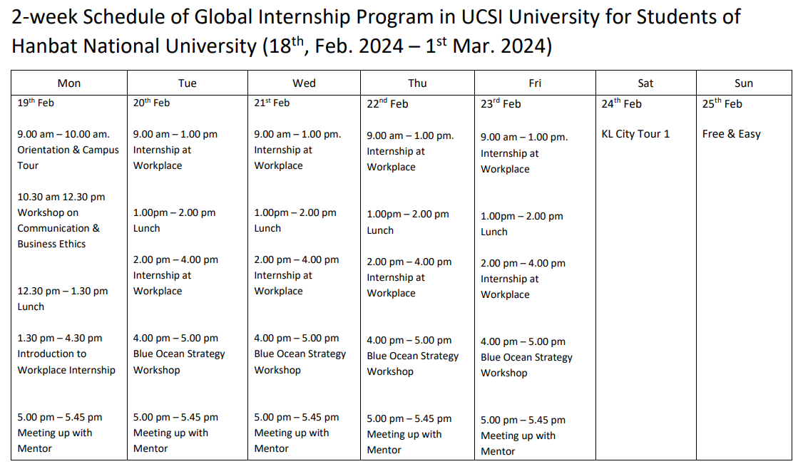 2월 18일부터 3월 1일까지 말레이시아로 인턴십을 가게됐다.