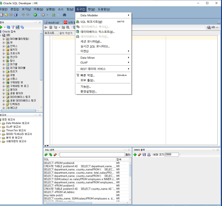 -비밀번호를 물어보면 앞 페이지에서 HR 계정 생성 시 입력했던 비밀번호를 입력함.- employees 테이블 내용 출력