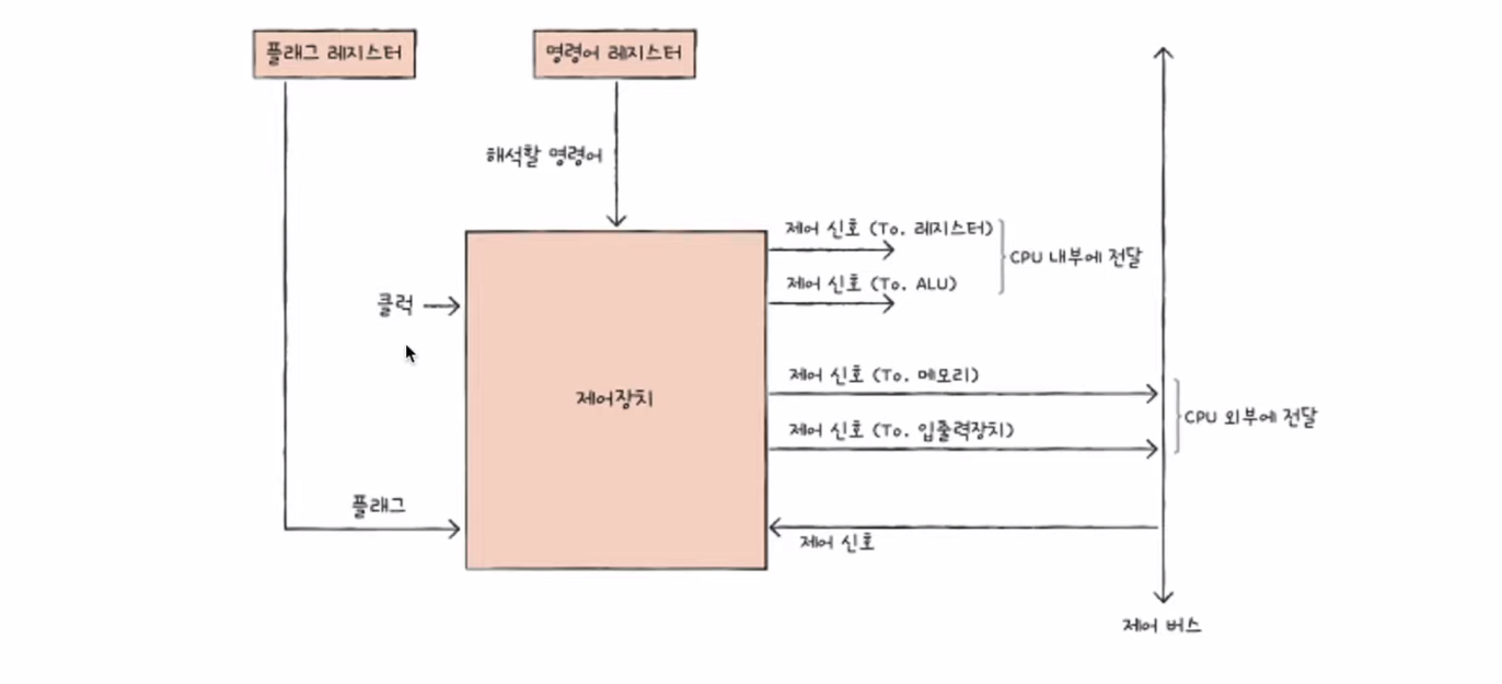 제어장치 : 제어 신호를 발생시키고 명령어를 해석하는 장치