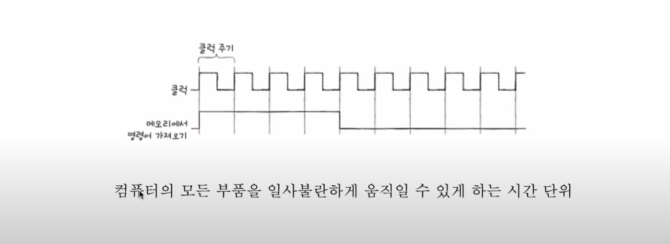 제어 장치의 동작 타이밍 기준이 되는 신호로서, 하나의 클록 펄스마다 하나의 마이크로 연산 혹은 마이크로 연산의 집합 수행