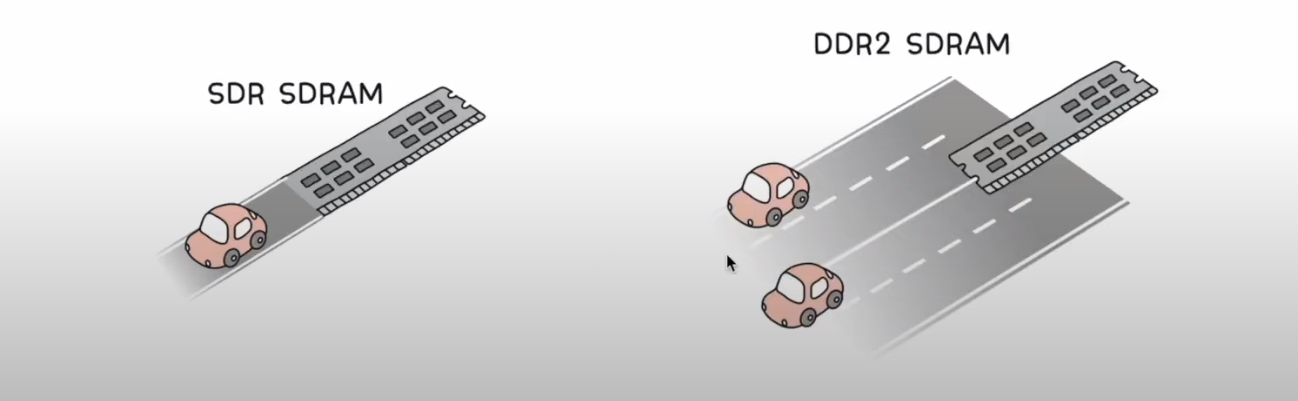 DDR2 SDRAM 은 DDR SDRAM 보다 대역폭이 2배 넓은 SDRAM 이다.