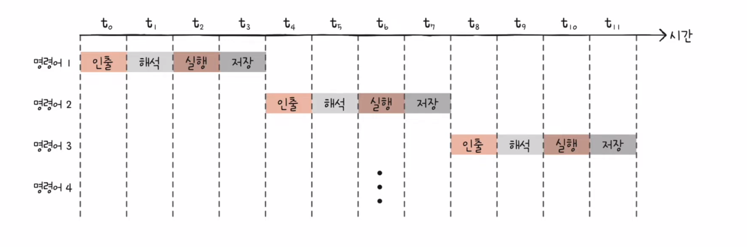 이렇게 명령어를 동시에 겹치지 않고 병렬로 처리하는 것을 명령어 파이프 라인이라고 한다.