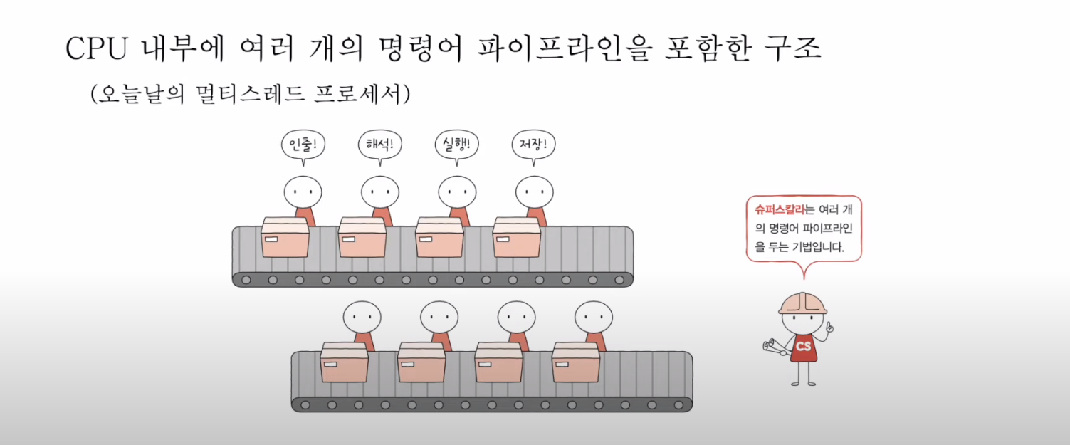 CPU 내부에 여러 개의 명령어 파이프라인을 포함한 구조