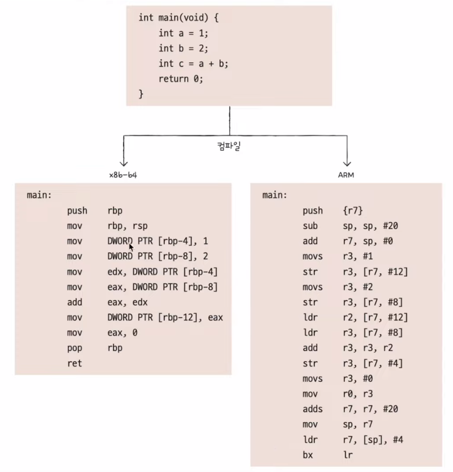 즉 x86-64 구조를 따르는 명령어들은 ARM CPU 는 이해하지 못하고 반대도 마찬가지다.