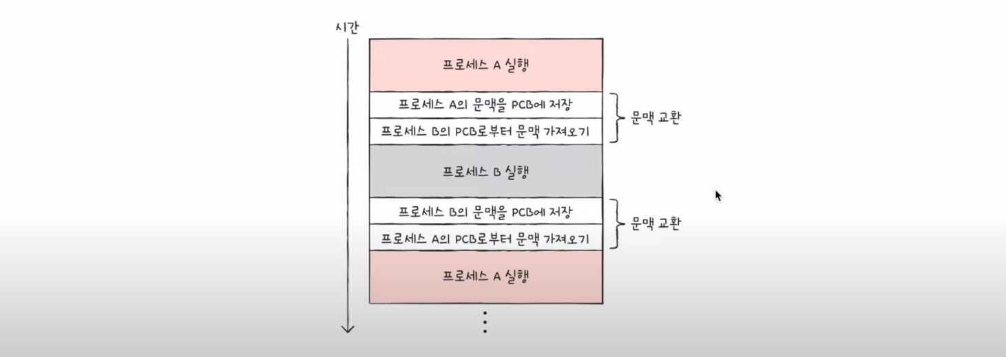 - 뒤이어 실행할 프로세스 B의 문맥을 복구