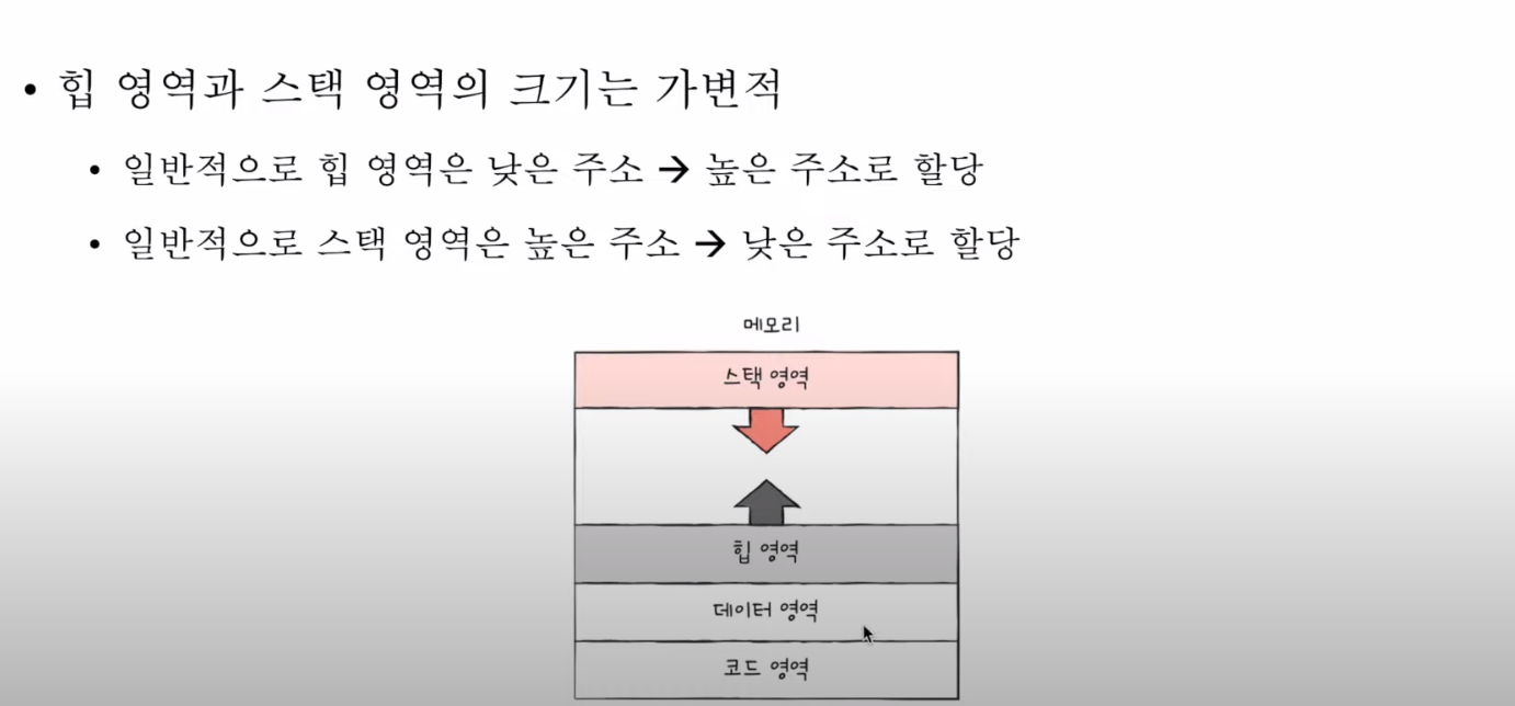- 예를 들면, 객체나 배열을 생성했을 때 프로그램 실행마다 얼마만큼의 데이터가 추가될 지 모른다. 데이터가 추가됨에 따라 유동적으로 공간을 늘릴 수 있는게 힙 영역이다.