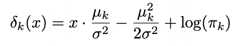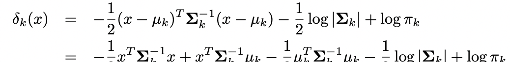 LDA decision reul depends on x only through a "linear" combination of its elements