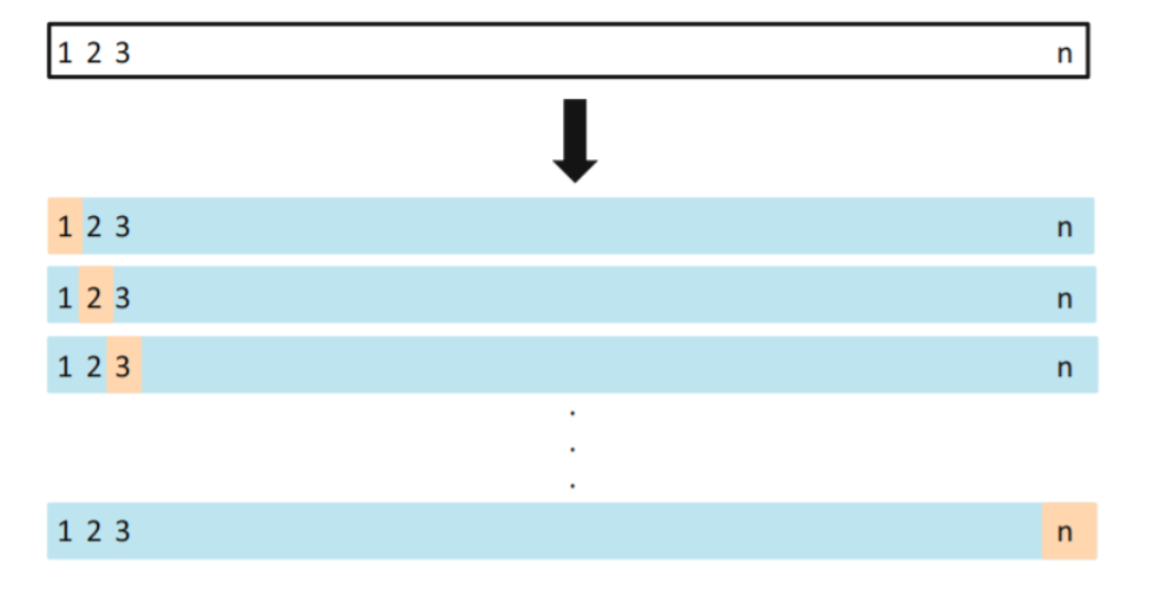 n-1개의 observation은 training data로 사용하고 나머지 하나의 observation에 대해서만 test-error estimate (MSEi)