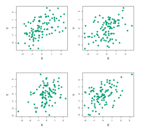 아래의 그림은 각 X,Y(return)을 100 pairs씩 simulation한 4개의 그림이고,