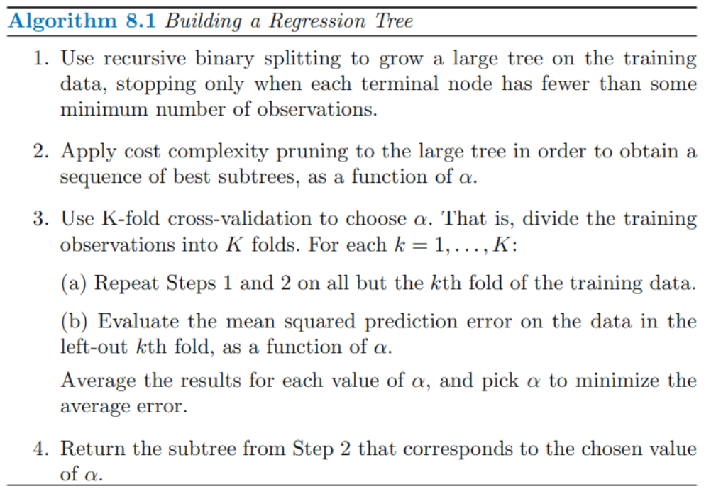 : 모든 subtree를 계산하는 것이 아니라, 적절한 tuning parameter에 따라 결정된 subtree 후보 몇개만 살펴 보는 것