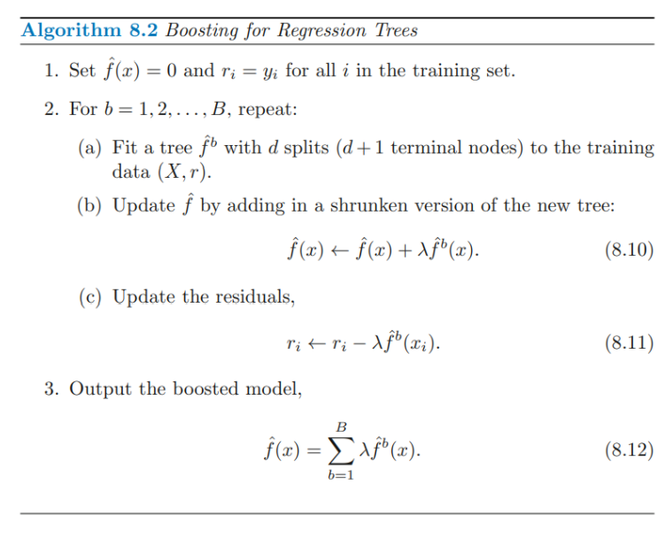 : current model이 설명해내지 못한 signal(residual)을 이용해 tree를 fit하고 이를 이용하여 fitted function을 update 시키고, 설명되지 않은 residual에서 설명된 부분 또한 update시킴