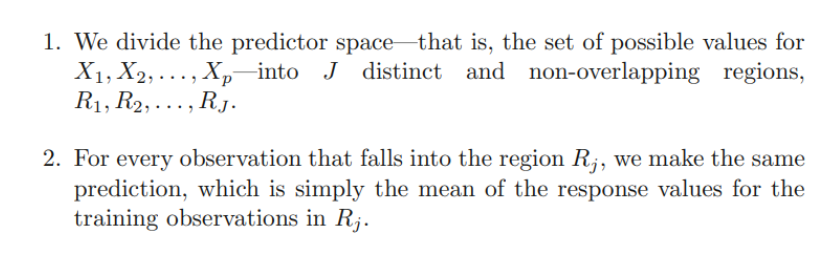 HOW? 모든 Predictors와 그에 해당하는 모든 cutpoint를 고려한 뒤, lowest RSS를 가져다주도록 Splitting Rule을 결정