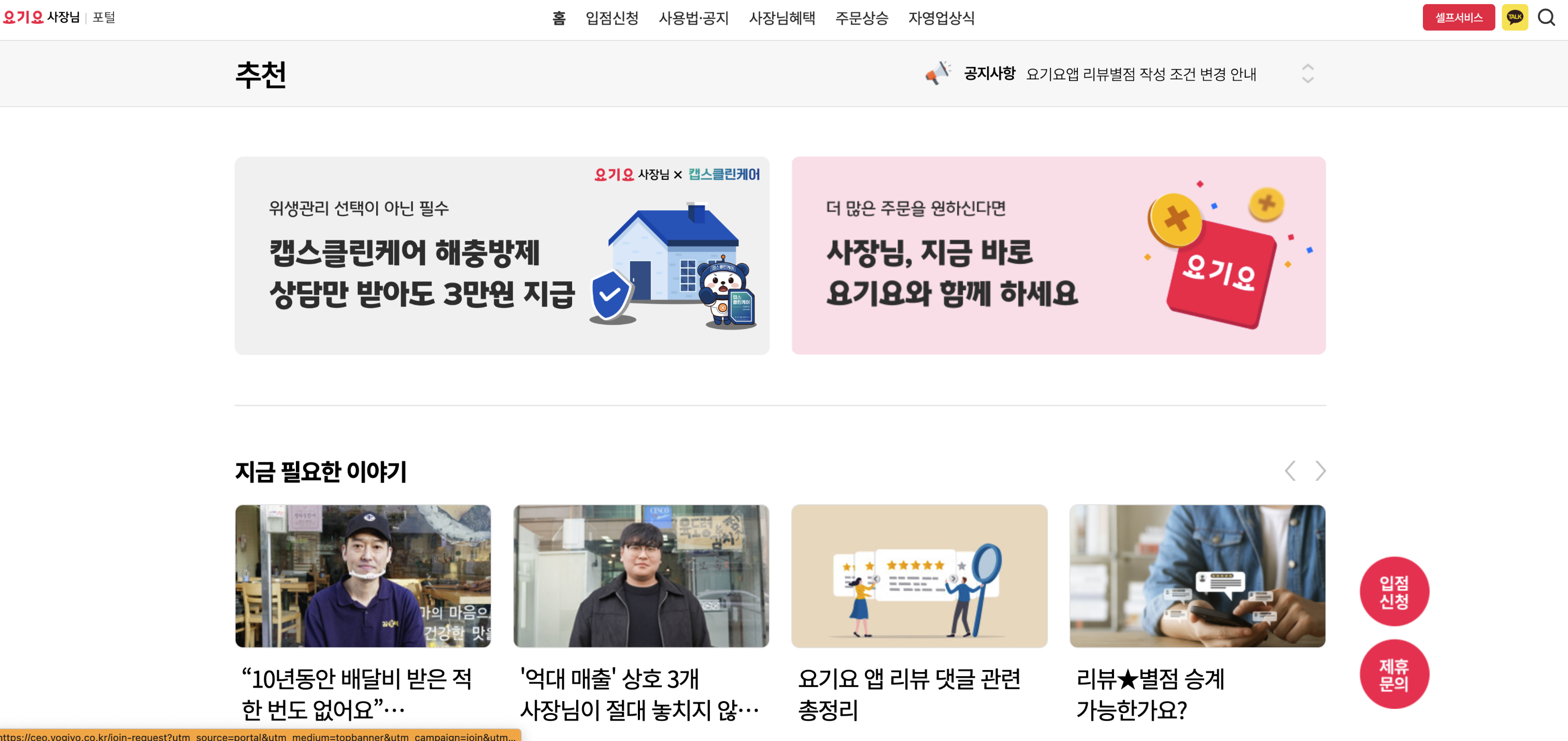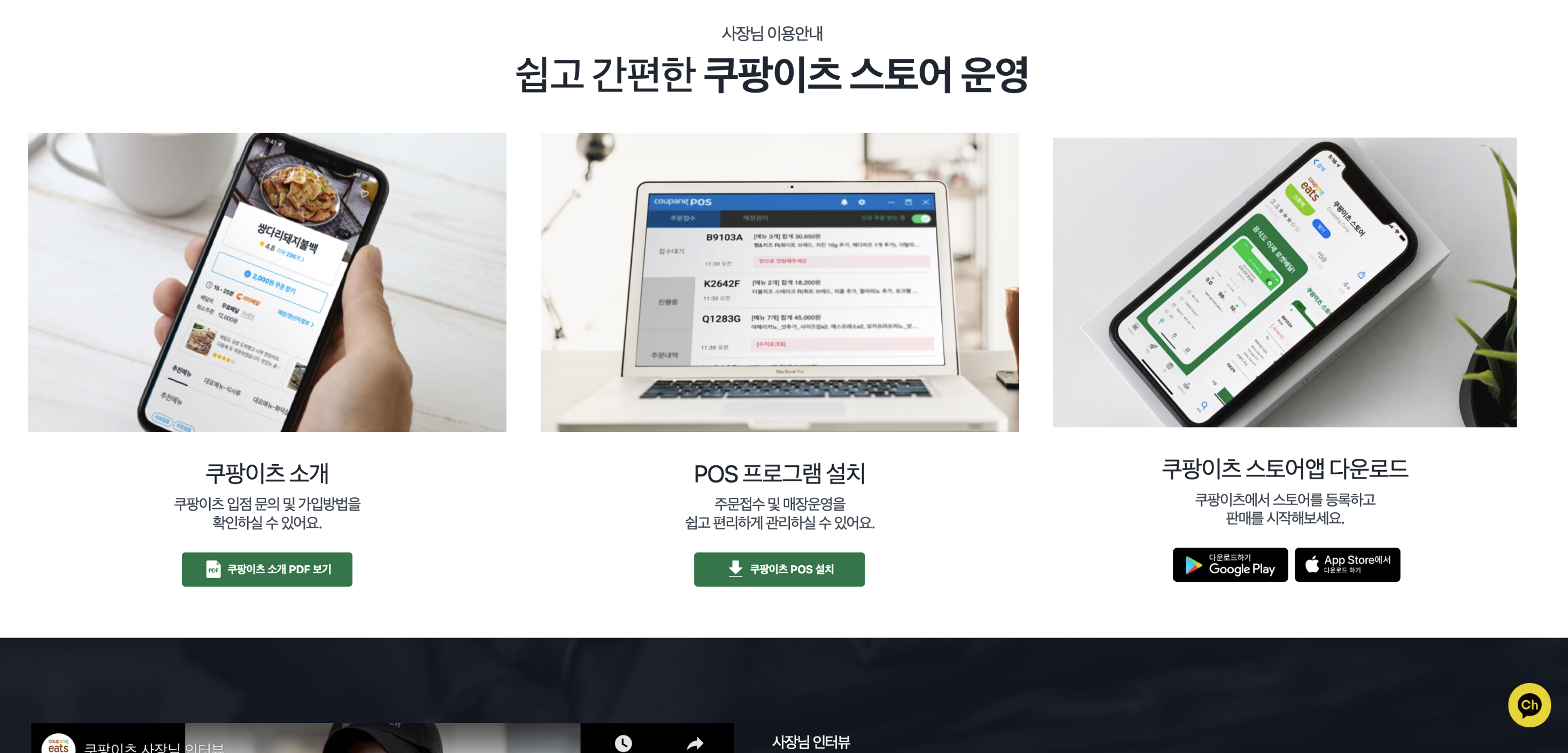 쿠팡이츠 사장님 포털 / 배민외식업광장 / 요기요 사장님 포털