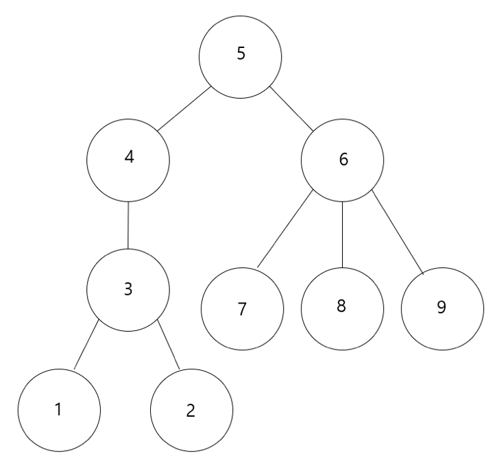 문제 예시처럼 이런 트리가 있다고 할 때 5번 노드를 부모 노드라고 하면 4번, 6번 노드가 자식 노드가 된다.