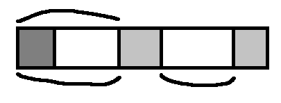 두 번째 경우를 그림으로 나타내면 위와 같이 나타낼 수 있다. 위에 나타낸 만큼이 왼쪽 벌이 따는 꿀, 아래에 나타낸 만큼이 오른쪽 벌이 따는 꿀이라고 하면 왼쪽 벌이 따는 꿀은 모든 장소에서 양쪽 벌이 시작한 장소를 제외한 꿀의 합이고, 오른쪽 벌은 오른쪽 벌이 시작한 장소의 오른쪽에 있는 모든 장소의 꿀의 합이다. 이를 구하기 쉽게 하기 위해 오른쪽 벌을 왼쪽 벌의 바로 옆에서 벌집 옆까지의 순서로 확인하면 왼쪽 벌이 따는 꿀은 항상 모든 장소의 합에서 두 벌이 시작하는 장소의 꿀만 빼면 구할 수 있고, 오른쪽 벌은 모든 장소의 합에서 왼쪽 벌이 시작하는 장소의 꿀의 양을 빼놓은 값에서 오른쪽 벌이 시작하는 장소의 값만 빼주면 오른쪽 벌이 따는 꿀을 쉽게 구할 수 있다. 이에 따라 값을 구하면 된다.