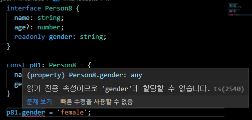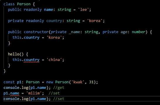 readonly가 붙어있으면 public이든 private이든