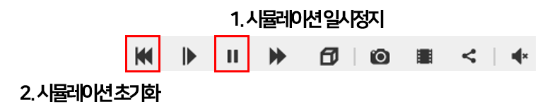해당 시뮬레이션 환경에 어떠한 객체를 추가하기 위하여 우선 시뮬레이션을 정지하고, 초기 시간으로 되돌려야함(아래 그림과 같이 수행)
