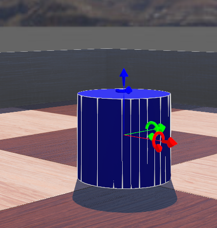 실린더 모양의 로봇 바디가 생성되었고, 물리적 특성 추가를 위한 bounding(하얀색 선)이 청색 실린더와 일치하는 것을 확인