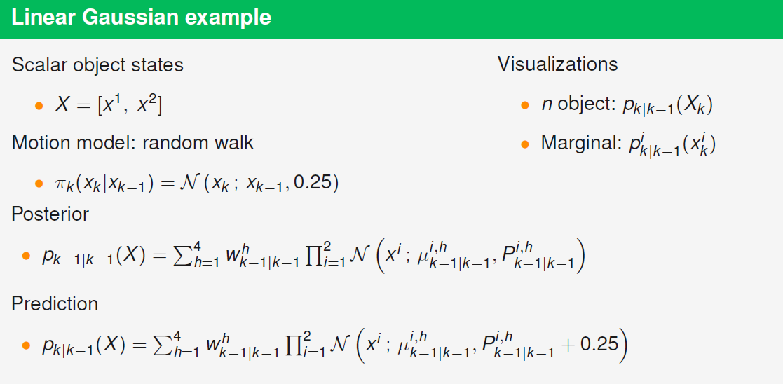 p k − 1 ∣ k − 1 ( X k − 1 ) = ∑ h w k − 1 ∣ k − 1 h p k − 1 ∣ k − 1 ( X k − 1 ) p_{k-1|k-1}(X_{k-1}) = \sum_{h} w^h_{k-1|k-1} p_{k-1|k-1}(X_{k-1}) p k − 1 ∣ k − 1 ( X k − 1 ) = h ∑ w k − 1 ∣ k − 1 h p k − 1 ∣ k − 1 ( X k − 1 )