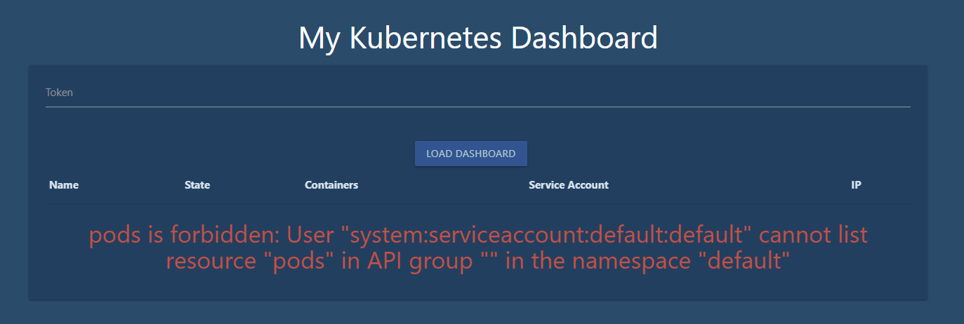 Edit the deployment to change ServiceAccount from default to dashboard-sa.