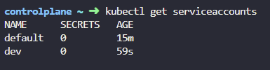 kubectl get serviceaccounts