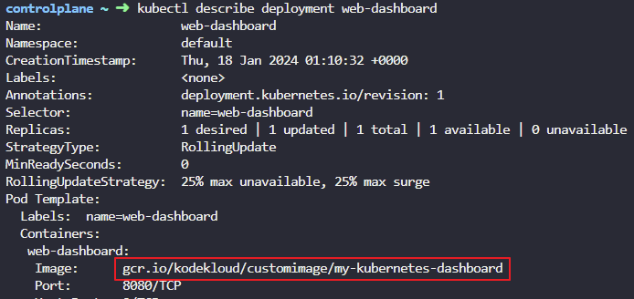 kubectl describe deployment web-dashboard