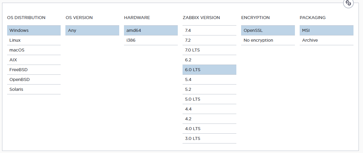 사용 버전: Zabbix 6.0 LTS, Windows용 zabbix_agent2