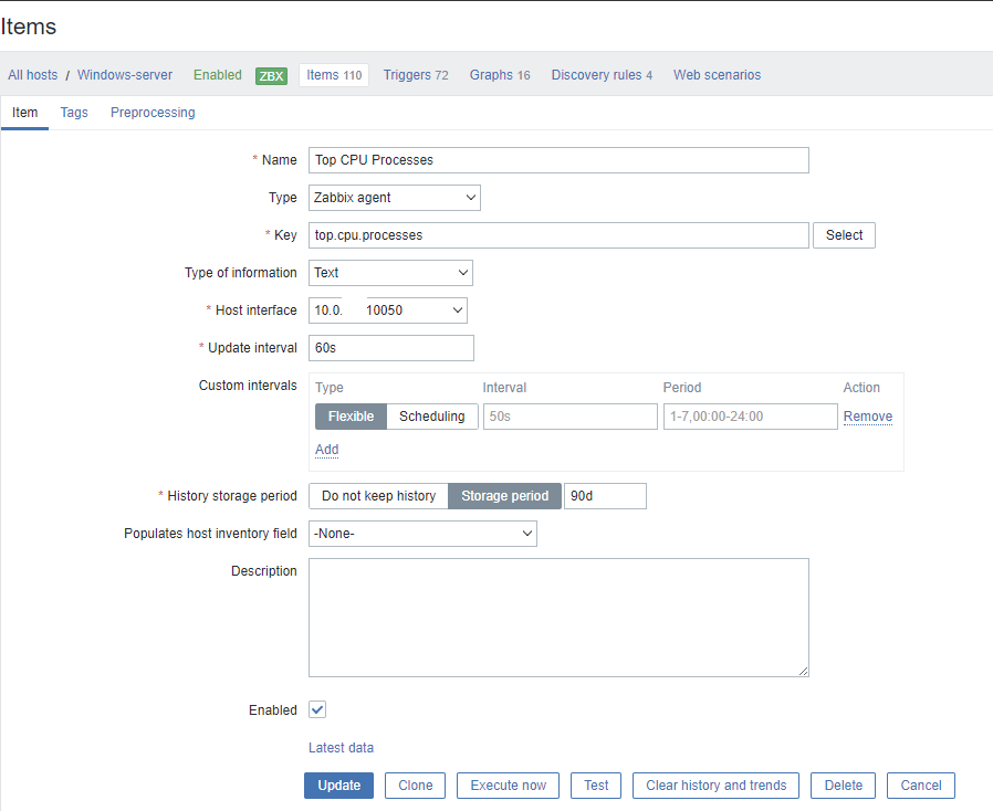 경로 : Configuration > Hosts > Windows-server > Items