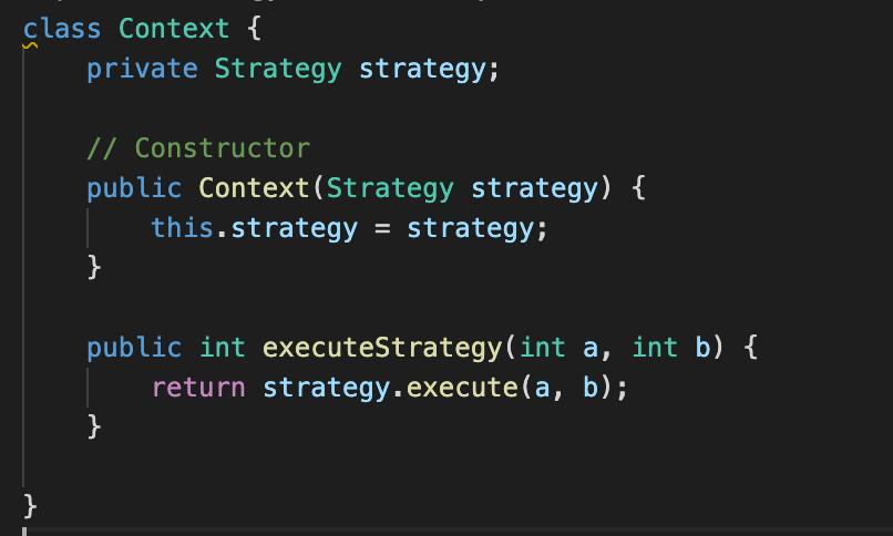 - 특정 전략을 interface로 만들어 놓아, 그것을 자유롭게 변경하여 사용하고, user로 하여금 context에 원하는 전략을 전달하게 하여 다양한 정책을 사용할 수 있게 한다. developer에게는 복잡한 if문 대신에 각각을 interface를 implement한 class로 만들어 놓아, 이해하기 쉽고, 유지보수도 쉽게한다.