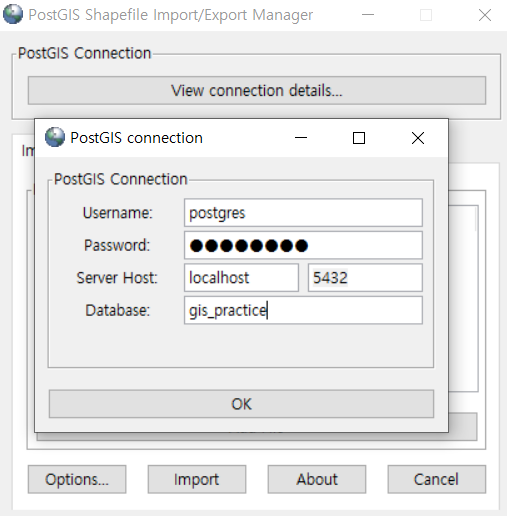 postgis를 설치했으면 postgis shapefile import/export manager가 설치된다.