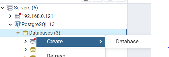 postgresql을 설치하고 데이터베이스 우클릭 > create > database를 선택한다.