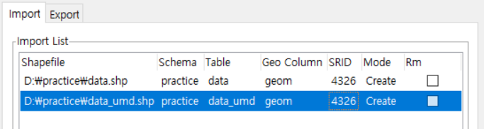 QGIS에서 내보낸 좌표계 타입으로 SRID를 설정.