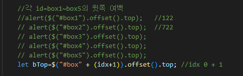 โณ๏ธ ๊ฐ id=box1~box5์ ์์ชฝ ์ฌ๋ฐฑ ํ์ธ ํ ๋ณ์์ฒ๋ฆฌ