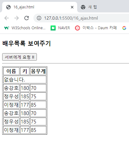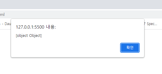 alert(result); //์๋ฒ๊ฐ ์๋ตํด์ค ๊ฐ์ฒดํํ์ ๋ฉ์ธ์ง