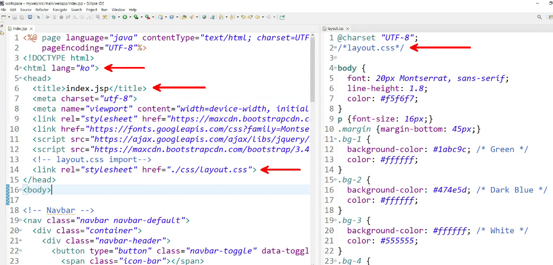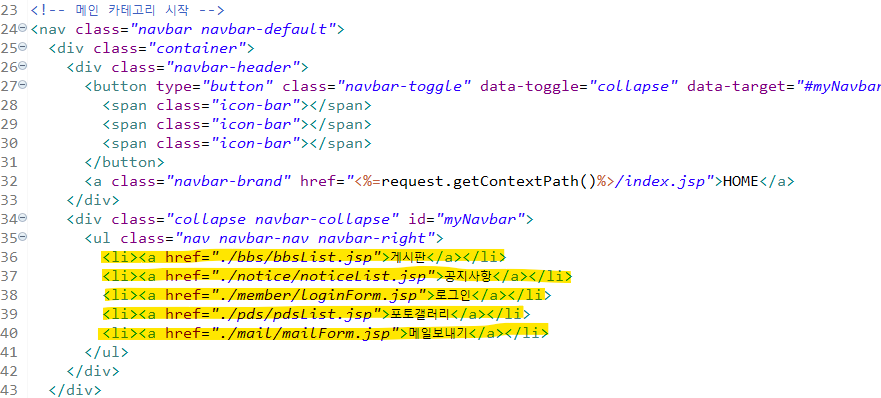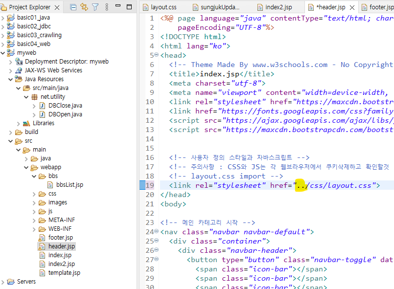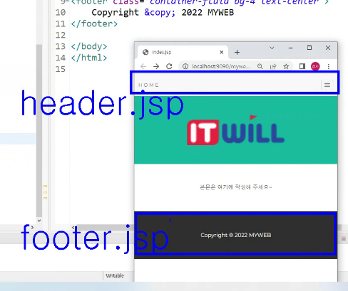 ↳ jsp 파일로 잘라내어 사용하면 다른 페이지를 만들때마다 저 부분을 모두 작성해주지않아도 된다.