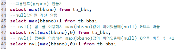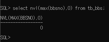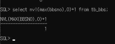 select nvl(max(bbsno),0)+1 from tb_bbs;