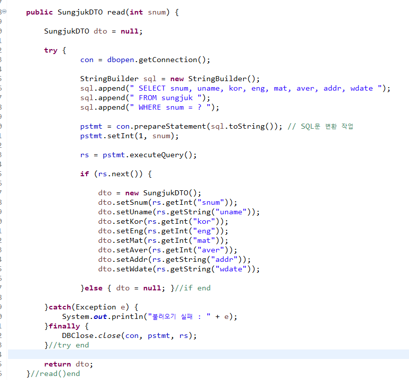 → read함수에 snum값을 넘긴다 (= dao.read(snum))