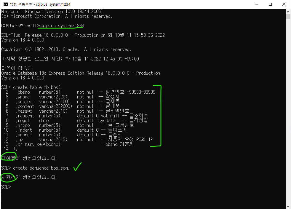 ↳ 테이블을 생성하지 않아 빈 값이 나온다.