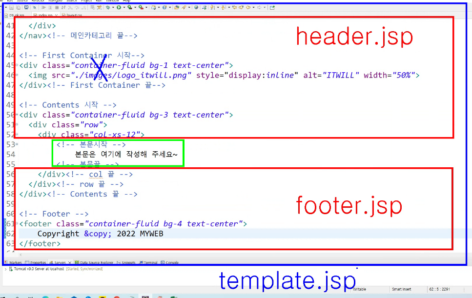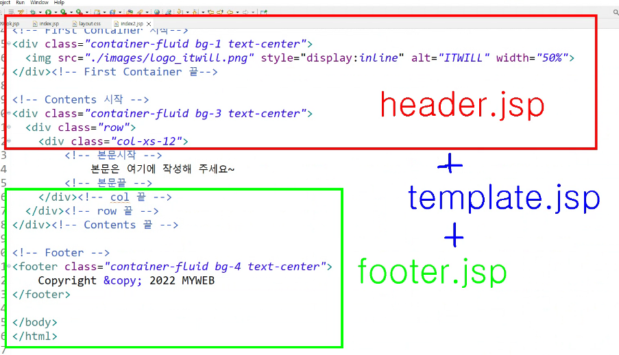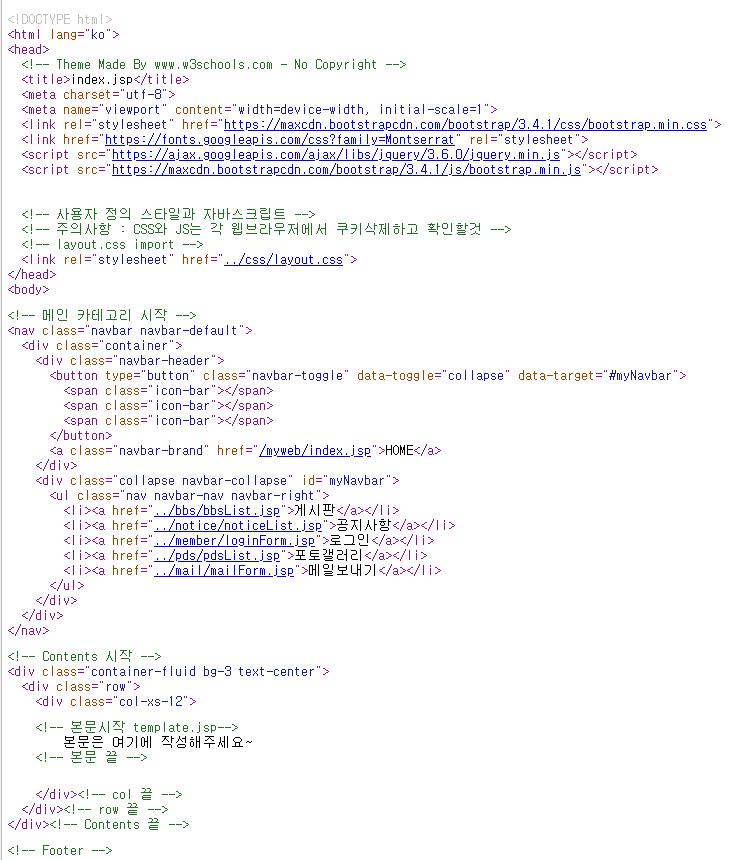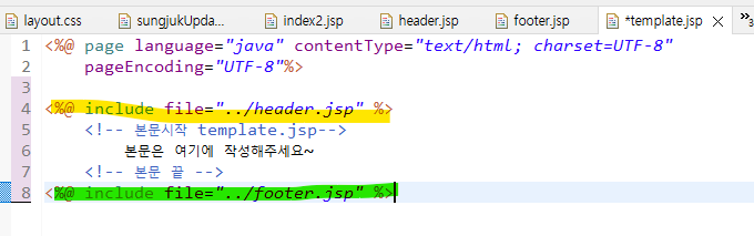 header.jsp + footer.jsp 파일을 합친 것을 template.jsp에 넣는다.