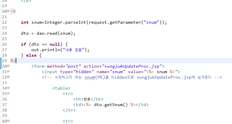 → 해당 snum값에 맞는 테이블들(select한 값들)만 불러온다 (= public SungjukDTO read(int snum))