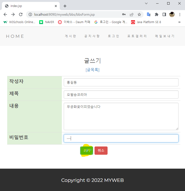 - home을 누르면 myweb 메인페이지로 갈수 있도록 하는 것.