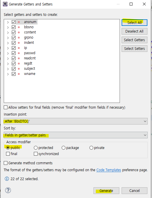 SungjukDAO에 새로운 클래스를 만들어(proc) 적용시켰다.