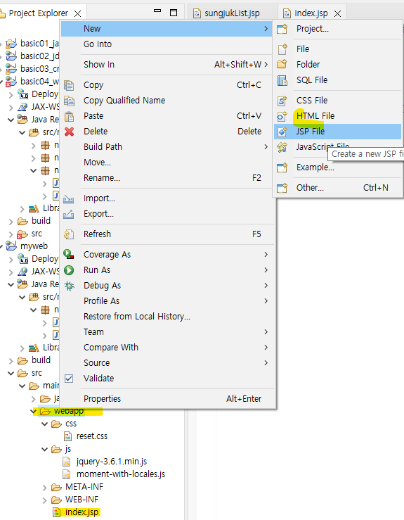 → 위에있는 basic04안에 있는 파일 복사 붙여넣기 하면 된다.