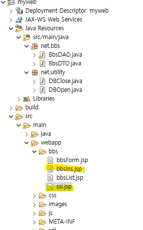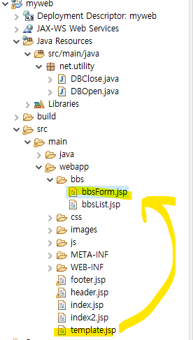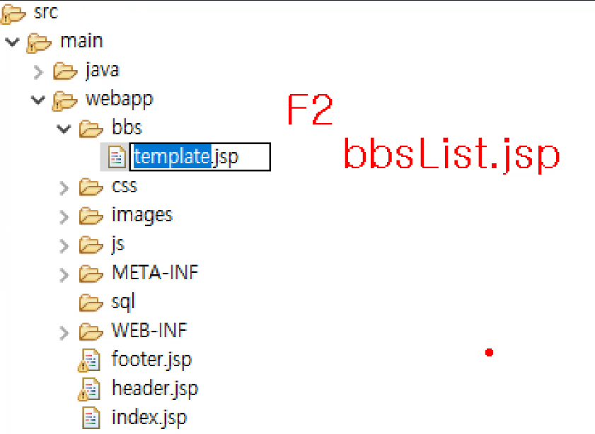 ※ Frontend 작업 폴더명 : /src/main/webapp/bbs