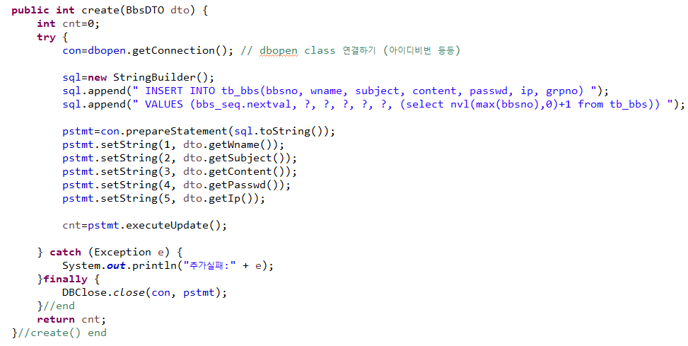 (※ 함수 맨 앞에 dto=null으로 이미 들어있는 값을 초기화 필수)